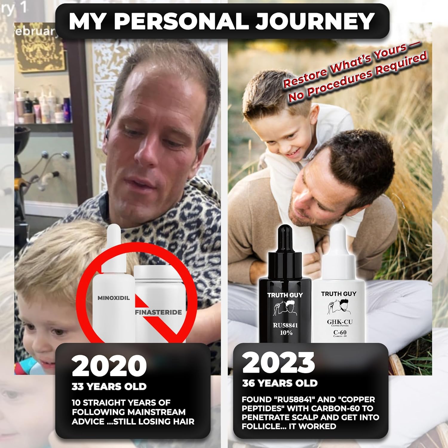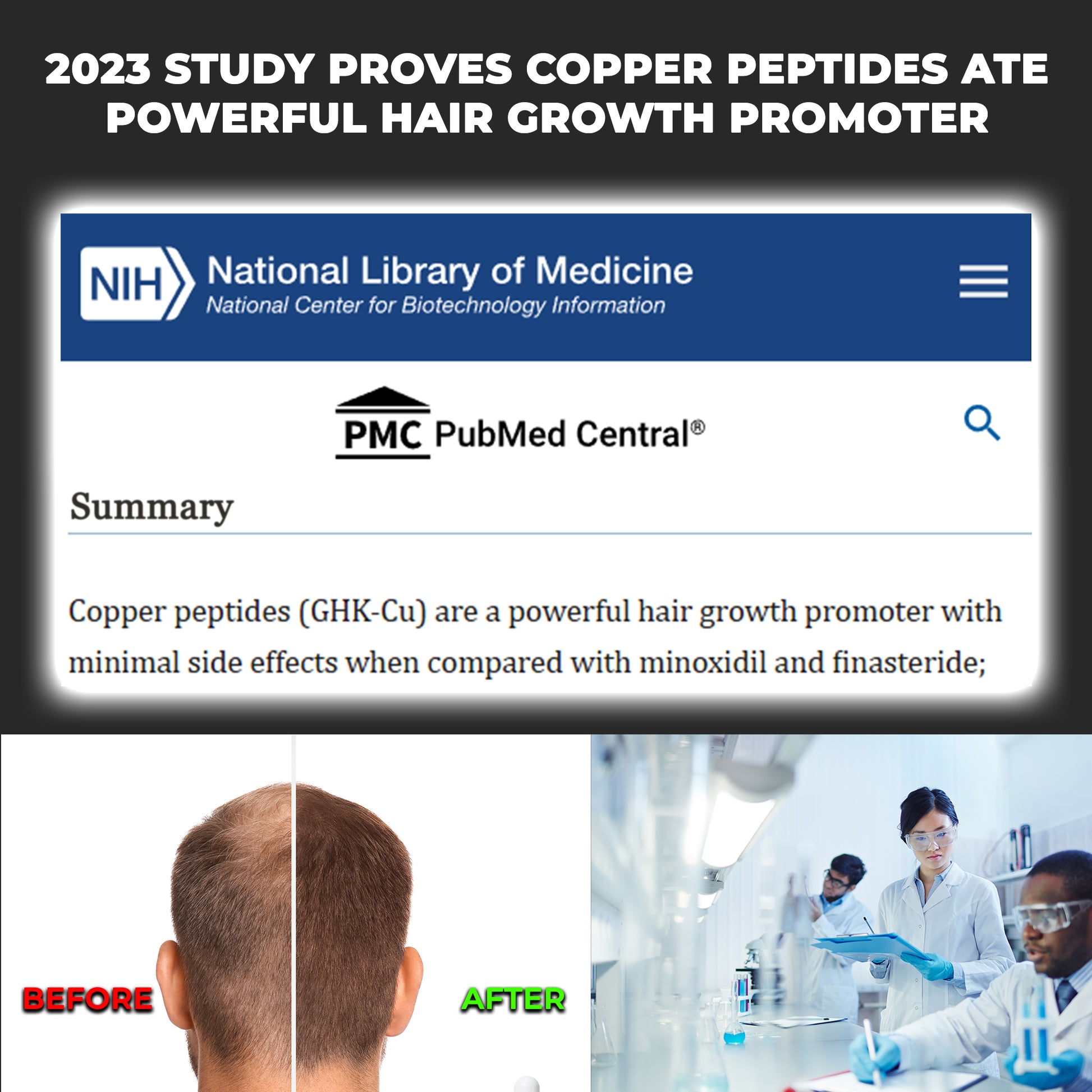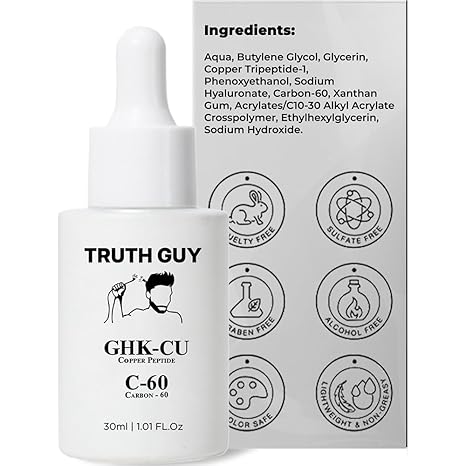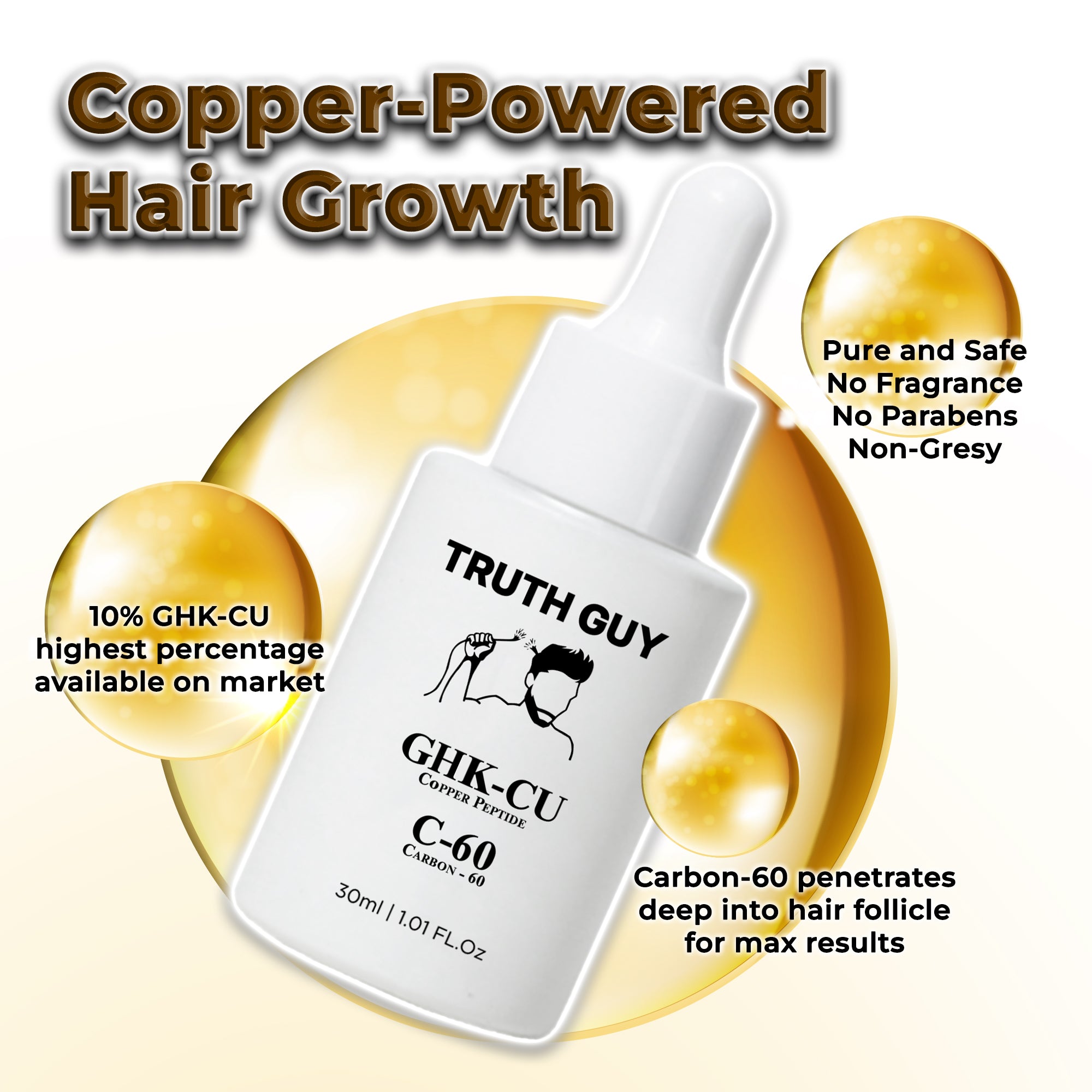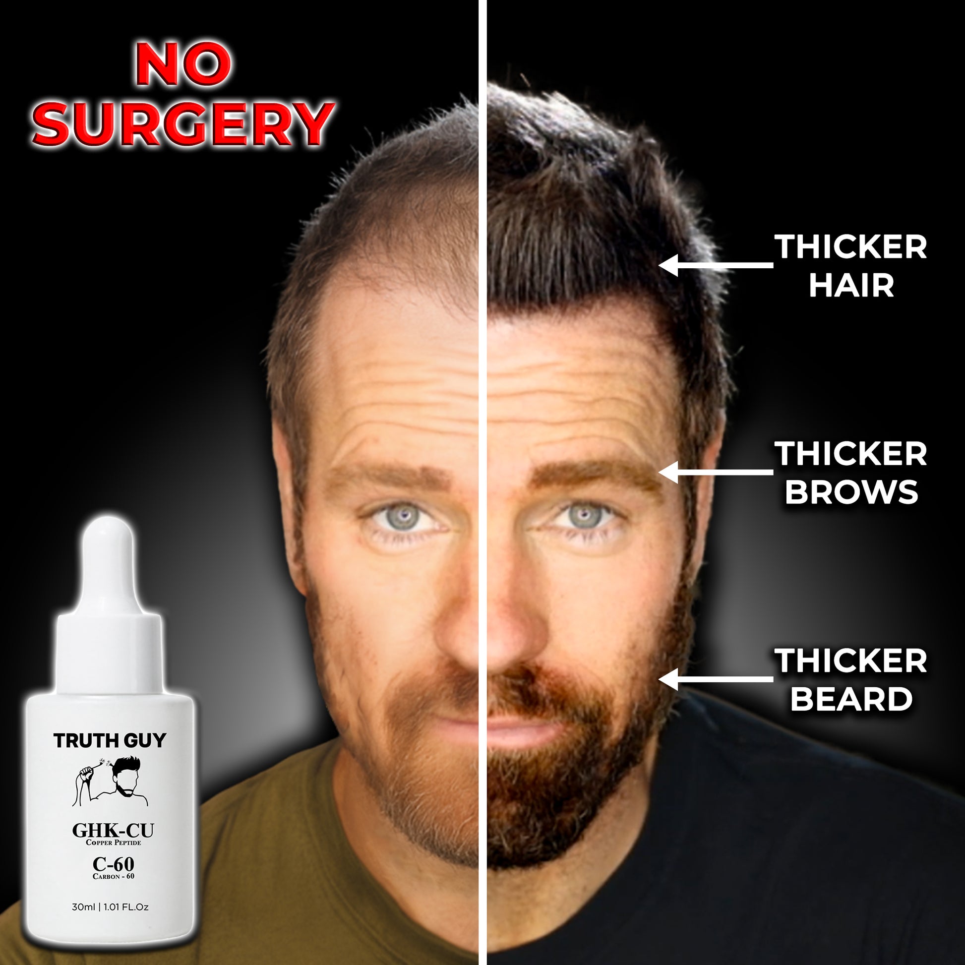 Hair Growth Serum - Copper Peptides GHK-CU & Carbon 60 - Thicker Hair, Beard, Lashes, and Brows. One Month Supply